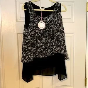Umgee Black and Tan Animal Patterned Sleeveless Blouse Medium NWT