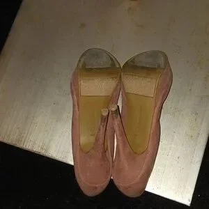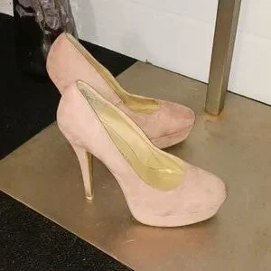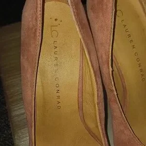 Preloved blush pink Lauren Conrad heels. These heels are a sude like material. The heels have stains on the bottom of the heels, I tried to clean them but the marks just won't come off.