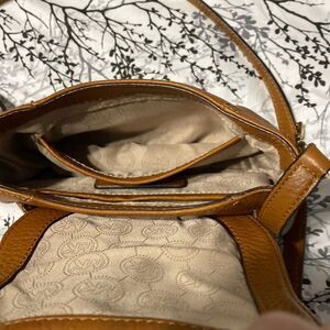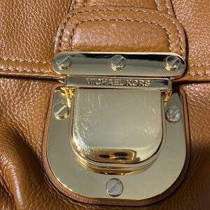 Michael Kors crossbody. Light brown. Excellent condition. No stains. Interior is CLEAN. Minor surface scratches on front buckle. Measurements are 8” wide. 6” tall and 2” wide. Should strap is adjustable. Minimum drop is 23” and max drop is 26”.
