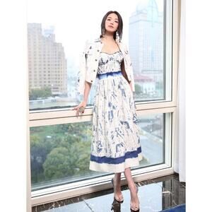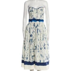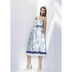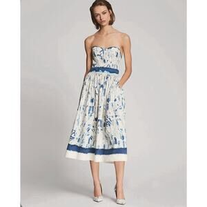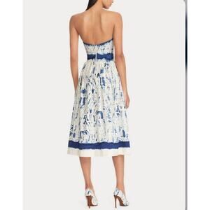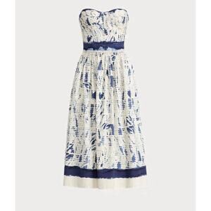 Ralph Lauren Collection Cotton Strapless Midi Dress Runway Fit Flare 10 M Blue