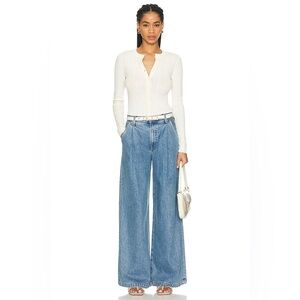 AGOLDE “Ellis Trouser” jeans in the Baffle wash. A relaxed, wide-leg silhouette with pleated detail at the front, designed to sit low on the waist for an effortlessly cool look. Crafted in the USA from premium rigid denim with recycled cotton.