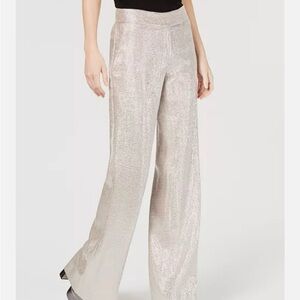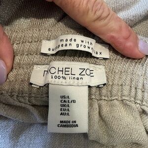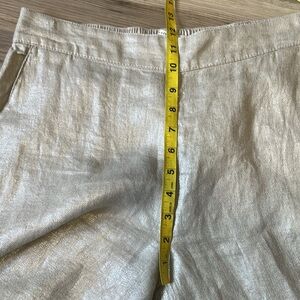 Rachel Zoe Wide leg linen pants Tan Metallic Pull on Pockets Size L Shimmer