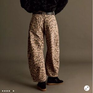 Stylish mid weight denim leopard print jeans. Button front. Very cute and comfortable!