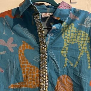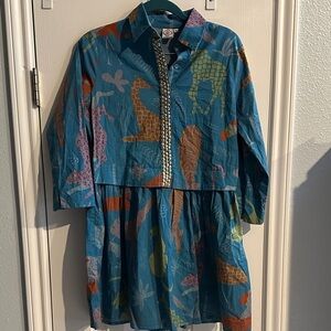 Sheridan French Colorful Animal Giraffe Print Midi Dress Women’s Small Cotton