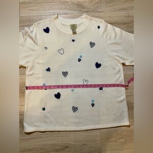 Teddi Woman Ivory Sweater with Blue Heart Embroidery – Size 2X