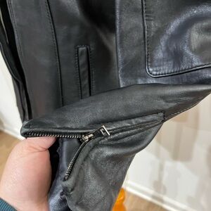 Discover timeless elegance with this classic black leather jacket. Perfect for adding a touch of sophistication to any outfit.