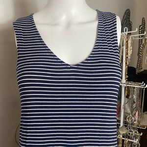 Sleeveless midi dress with a classic striped pattern. Comfortable and stylish for any occasion.