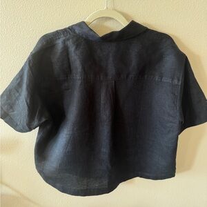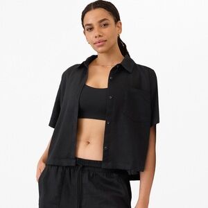 Athleta Retreat Short Sleeve Linen Button Down shirt Sz medium black - like new!
