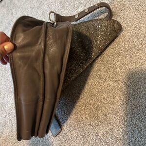 Elegant shoulder bag with shimmering silver accents. Perfect for adding glamour.