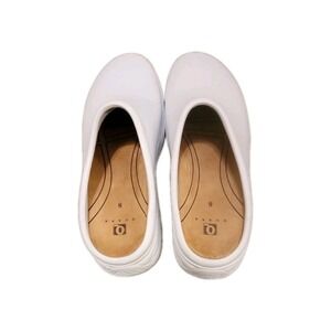 The Quark Quarky Clogs Shoes in size 8 are a comfortable and stylish option for women looking for a slip-on nursing or work shoe. The solid white color, low top design, and flat heel make them perfect for casual occasions in the summer, fall, or spring. Made with a lightweight EVA material, these clogs feature a rubber outsole for added durability and performance. The slip-on style and cork insole provide added comfort, making them a practical and fashionable choice for those on their feet for extended periods.