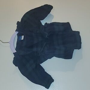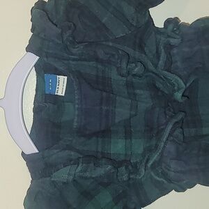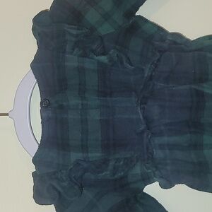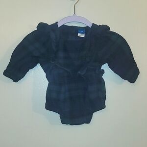 Old Navy baby girls flannel holiday onsie shoulder ruffles green and black LOT G