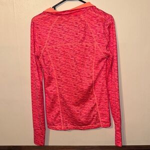 Pink and purple design with salmon color inside. Size small. Thin material. Like new! Barely used!
