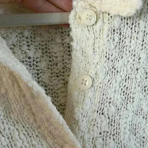 This vintage Laura Daniels sweater is a must-have for any fashion-forward woman. The ivory color and chunky-knit style make it perfect for any occasion, whether it's a day at the beach or a night out on the town. The collared neckline and short sleeves add a touch of sophistication, while the three-button closure and accents give it a unique flair.