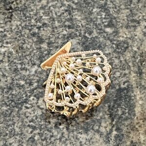 This exquisite gold jewelry clip features elegant pearl accents, perfect for adding a touch of sophistication to any outfit.