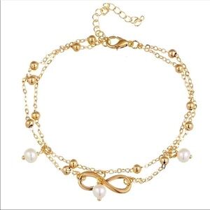 Ankle Bracelet Gold Pearl 2 Chains Infinity Pendant