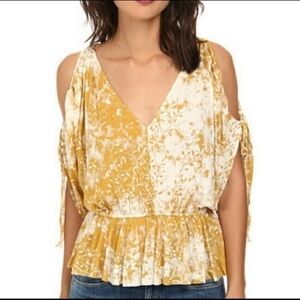 FREE PEOPLE Abracadabra Cold Shoulder Floral Drapey Boho Mustard Yellow Top