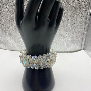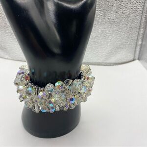 Vintage Glass Aurora Borealis Bead Cha Cha Stretch Bracelet-Japan 1950s