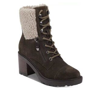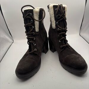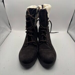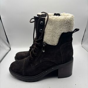 Marc Fisher Lansly Brown Lace-Up Booties Fur Lining Size 9