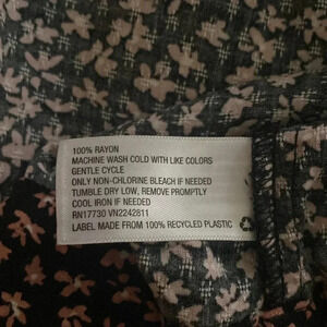Size large. In excellent condition. Black with pink floral pattern. Long sleeve. Flowy.