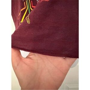 Print located on lower right quadrant. Tour info on back left. Raw edge detailed look. Racer back.