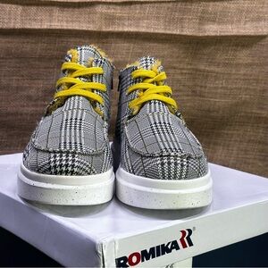 Romika Helsinki black & yellow plaid high hi top sneakers boots sz 8