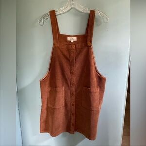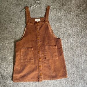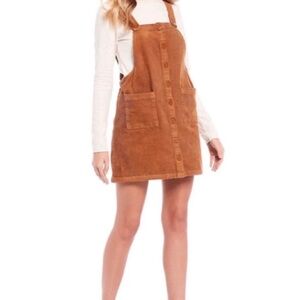Chelsea & Violet Tan Corduroy Mini Bib Jumper Dress Size M Retro look