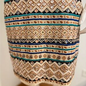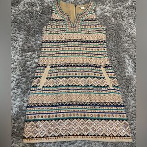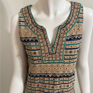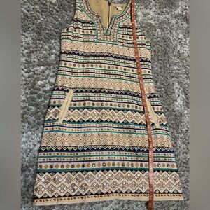 Lucky Brand bohemian-style dress with embroidered details and shiny decorations, size S