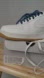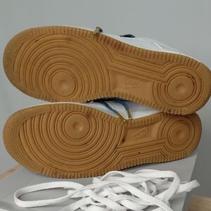 Classic Nike sneakers. White leather upper. Blue laces. Gum sole.