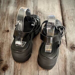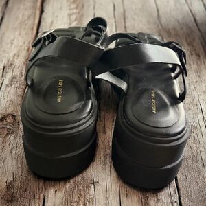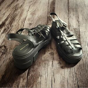 New American Eagle Womens Fisherman Sandals Size 11 Black Open Toe Chunky Heel