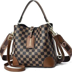 Cross Body Bag Purses Brown & Black Vegan Leather Crossbody Bucket Bag