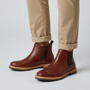 Nisolo Marco Everyday Chelsea boots in rich terracotta leather with a clean, timeless silhouette built for everyday wear. Brand new with minor cosmetic box rubs from storage — leather may show natural variations in tone and light surface marks consistent with genuine leather.