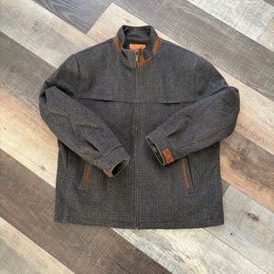 ENZO Men’s Wool Blend Zip Jacket Gray Brown Trim Size 2XL