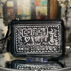 Coach Poppy Y2K Graffiti Script Leather Wristlet / Small Zip Pouch