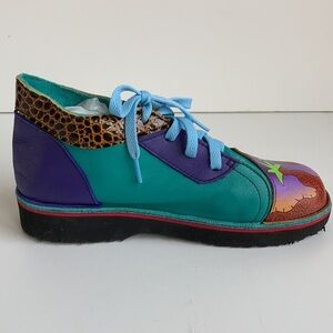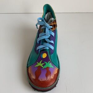Great used condition art to wear Soletech painted sneakers. Turquoise, purple, alligator embossed, palm trees, sun and moon.