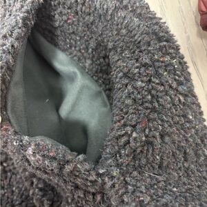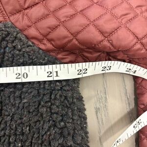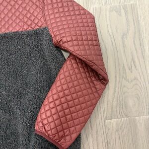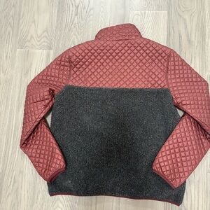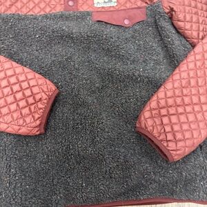 Quilted burgundy top with black fleece bottom.