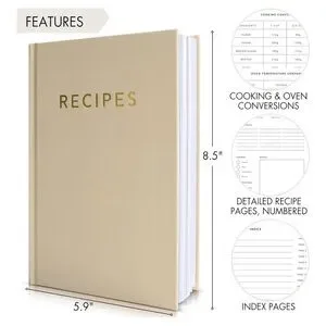 Organize your favorite recipes with this elegant beige recipe book. Perfect for any kitchen, it adds a touch of sophistication to your cooking space.