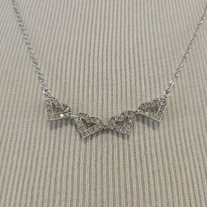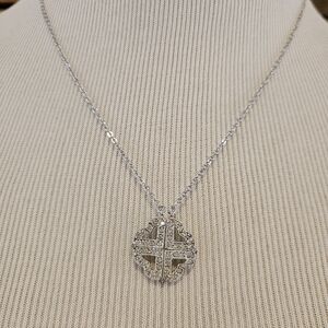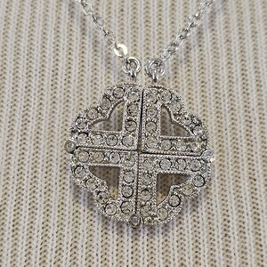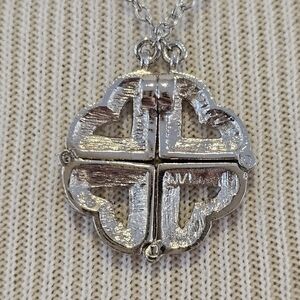 Silvertone Magnetic 4 Leaf Clover/4 Heart Necklace W/ Clear Rhinestones