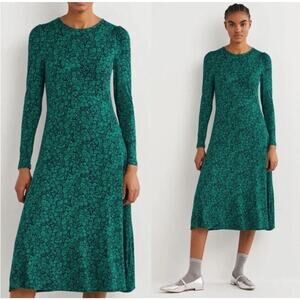 NWT Boden Jersey Midi Dress Floral Modest Cottagecore Blue Green Women's US 12L