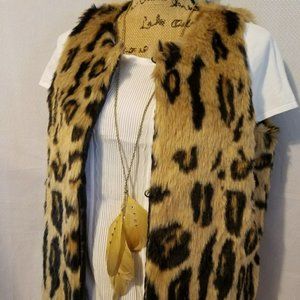 Romeo & Juliet Couture Leopard Print Faux Fur Black & Tan Vest Medium NWOT