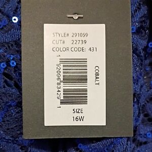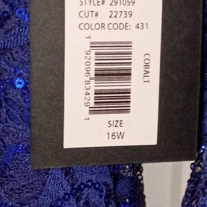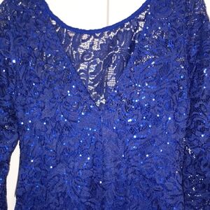 Shimmering royal blue lace with sequins. Long sleeves. Perfect for evening events.
