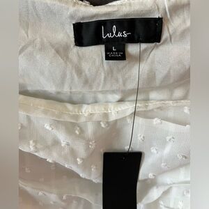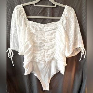 NWT Women’s LuLus Think Of Me Ivory Swiss Dot Ruched Body Suit; Size L