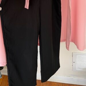 NWOT Chic Girls size 8, 2 piece black spaghetti strap pants jumpsuit with a flowing pink sleeveless overlay. Perfect for any occasion. Never worn