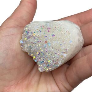 Angel Aura Quartz Crystal Heart Stone Titanium Iridescent Aurora Gift Stone