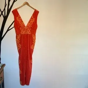 Free People Setting Sun orange sleeveless 100% cotton jumpsuit