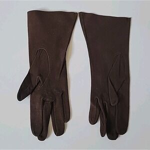 Miss Aris Gloves Vintage Suede Bracelet Length Five Finger Chocolate Brown