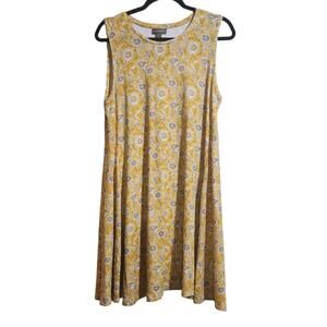 Style & Co Petite XL Sleeveless Yellow Floral Printed Flip-Flop Swing Dress Flowy