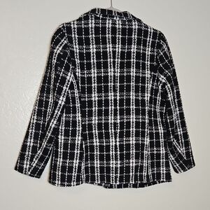 Elevate your style with this chic black and white plaid blazer. Perfect for any occasion, this jacket offers a sophisticated look with its classic design. Ideal for pairing with both casual and formal outfits.