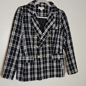 Chic Black and White Plaid Women's Blazer
