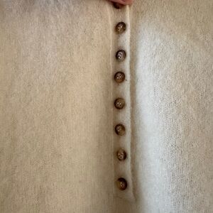 Elegant cream sweater with button details. Soft and cozy fabric. Perfect for layering.