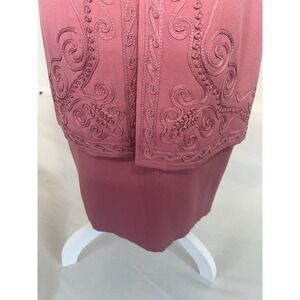Elevate your wardrobe with the Karin Stevens Woman's Jacket Dress, a versatile piece perfect for various occasions. The tasteful pink hue complements the round neck design and short sleeves, making it an ideal choice for business events, holy communions, parties, travel, or as a charming wedding guest outfit. Crafted from soft, woven rayon, this knee-length dress ensures both comfort and style. The dress features an attached lined jacket, adding a touch of sophistication and functionality to the ensemble. The regular size 8 fits true to size, and the dress is adorned with elegant accents such as embroidered details and rhinestone embellishments, which provide a hint of glamour without overpowering the simple yet elegant silhouette.